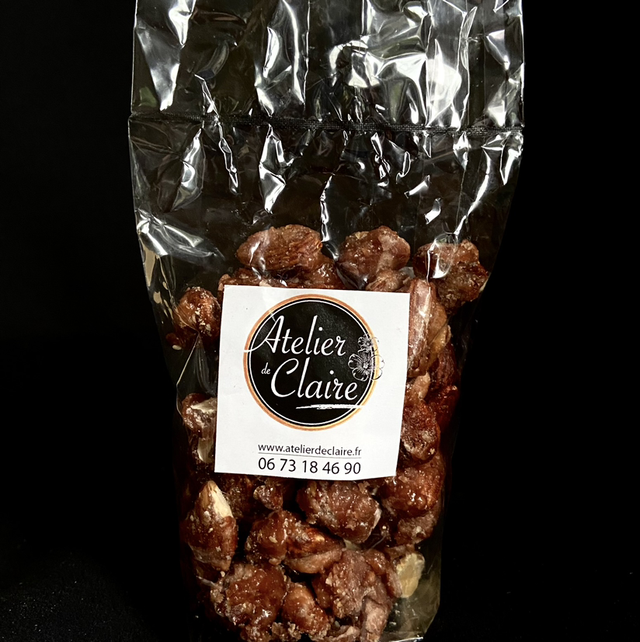 amandes caramélisées avec une pointe de fleur de sel de Guérande